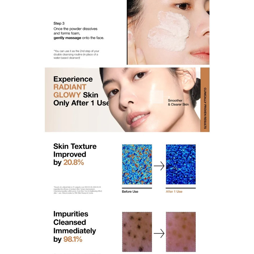 • Formulated with Papain, an ideal ingredient for blemish-prone skin, to further amplify exfoliating and brightening effects, promoting a smooth and radiant complexion.